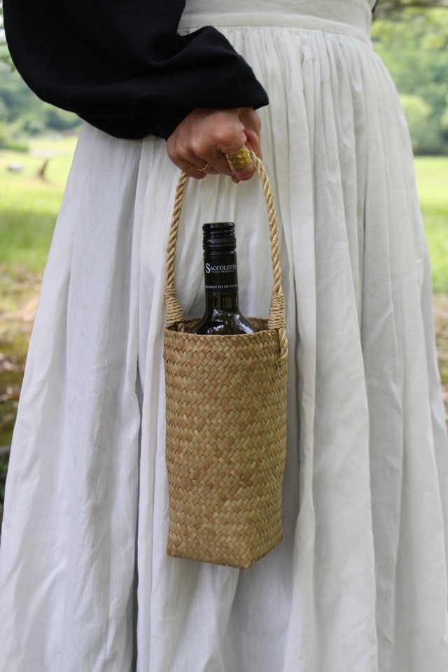【商品特徴】 ボトルホルダーにも、花器にも。 細かく編み込まれたカチューの筒形バスケット。 ワインボトル(750ml)がすっぽり入るサイズで、お呼ばれの手土産やピクニックにもぴったりです。 お気に入りのナチュラルワインをこの籠に入れて贈れば、それだけで特別感のあるギフトに。 瓶を入れて花器として楽しむのもおすすめです。 暮らしに寄り添う、素朴で美しい一品です◎ ご覧のモニターやブラウザの環境により、実際の商品と色味が異なって見える場合がございます。あらかじめご了承ください。 お客様のイメージと違う等のご都合による返品は承っておりません。 ▹ サイズ:Φ約12cm×高さ20cm (取手含む高さ約36.5cm) 物によってのΦがかなり違います! 手作りなのでご理解ください。 ▹ 素材:カチュー ▶︎80サイズ 【注意事項/お取扱について】は ネットショップの一番上にあります 【籠について】を必ず一読ください。 ////////// 発送は紙袋になります。 いくつかまとめてご注文いただいた場合、小さなバスケットを大きなバスケットの中に入れてお包みすることがあります。送料は大きいサイズに合わせた金額となります。