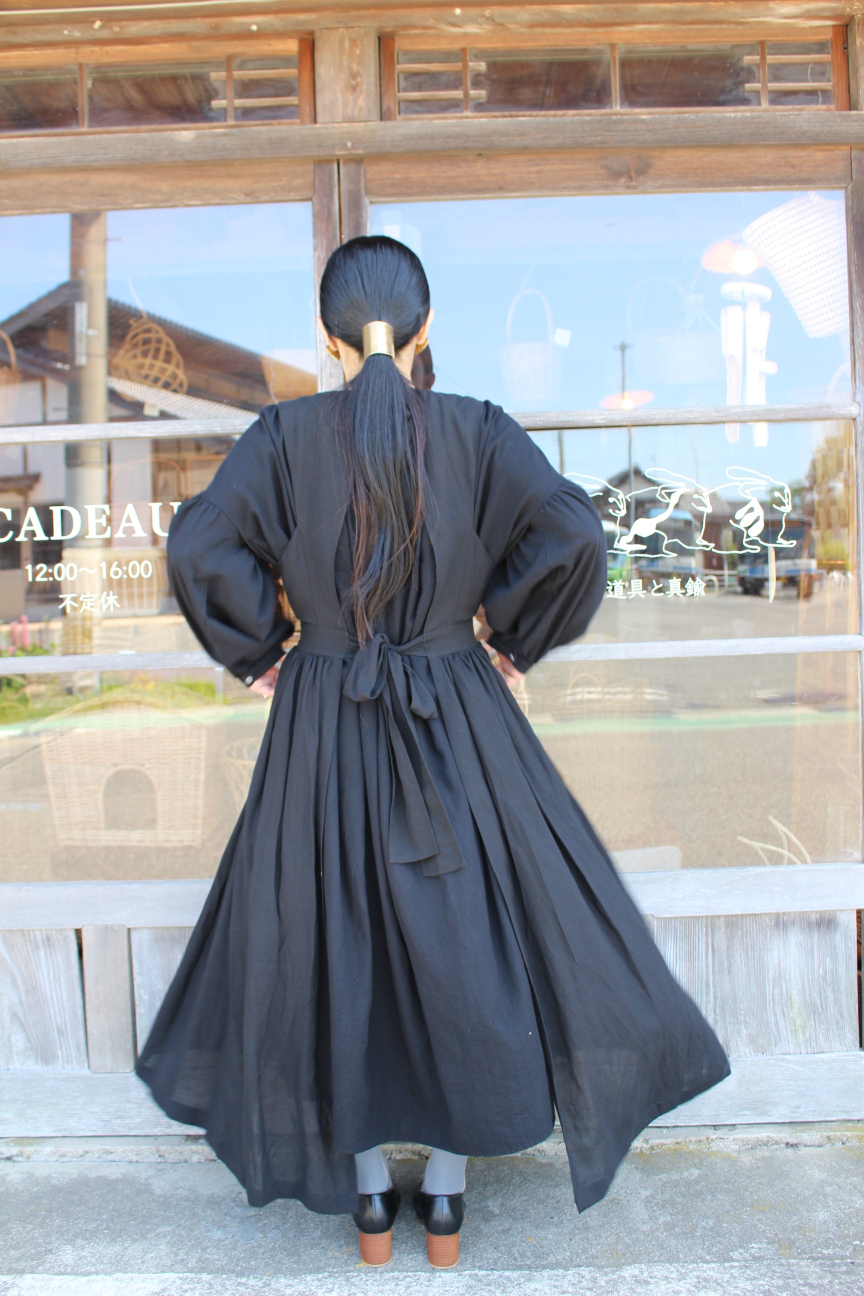 後ろはダブルリボンで、ギャザーたっぷり。ポケットもついています。