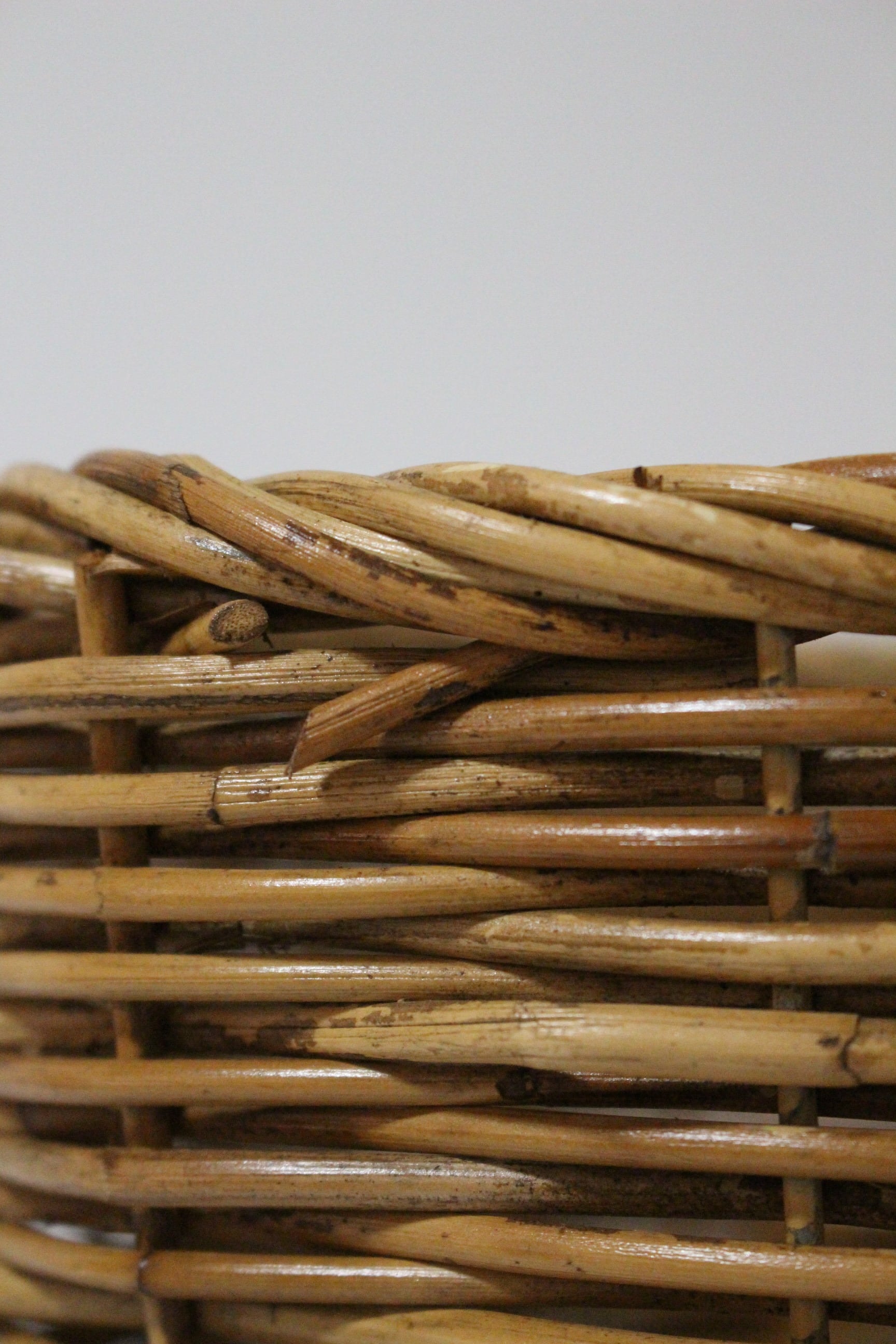 ⚫︎ハンドル部分の傷、素材の色ムラ、節目の表出、編み終わりの表出などもあります。
