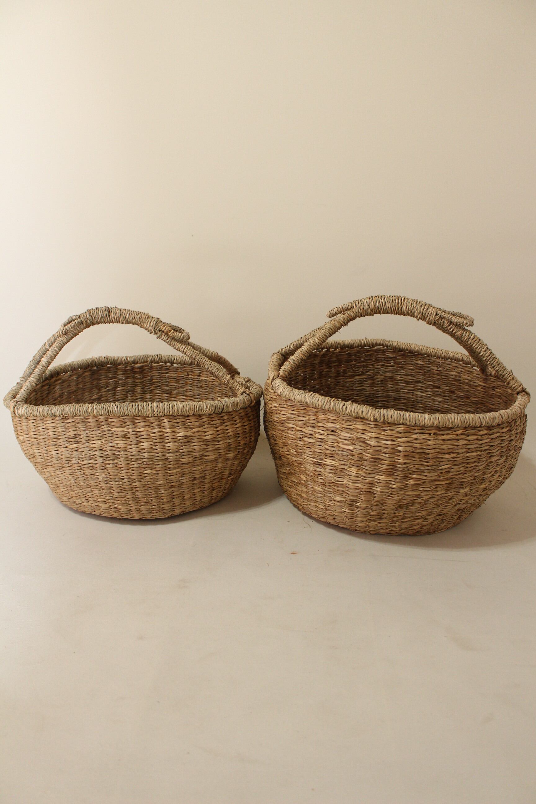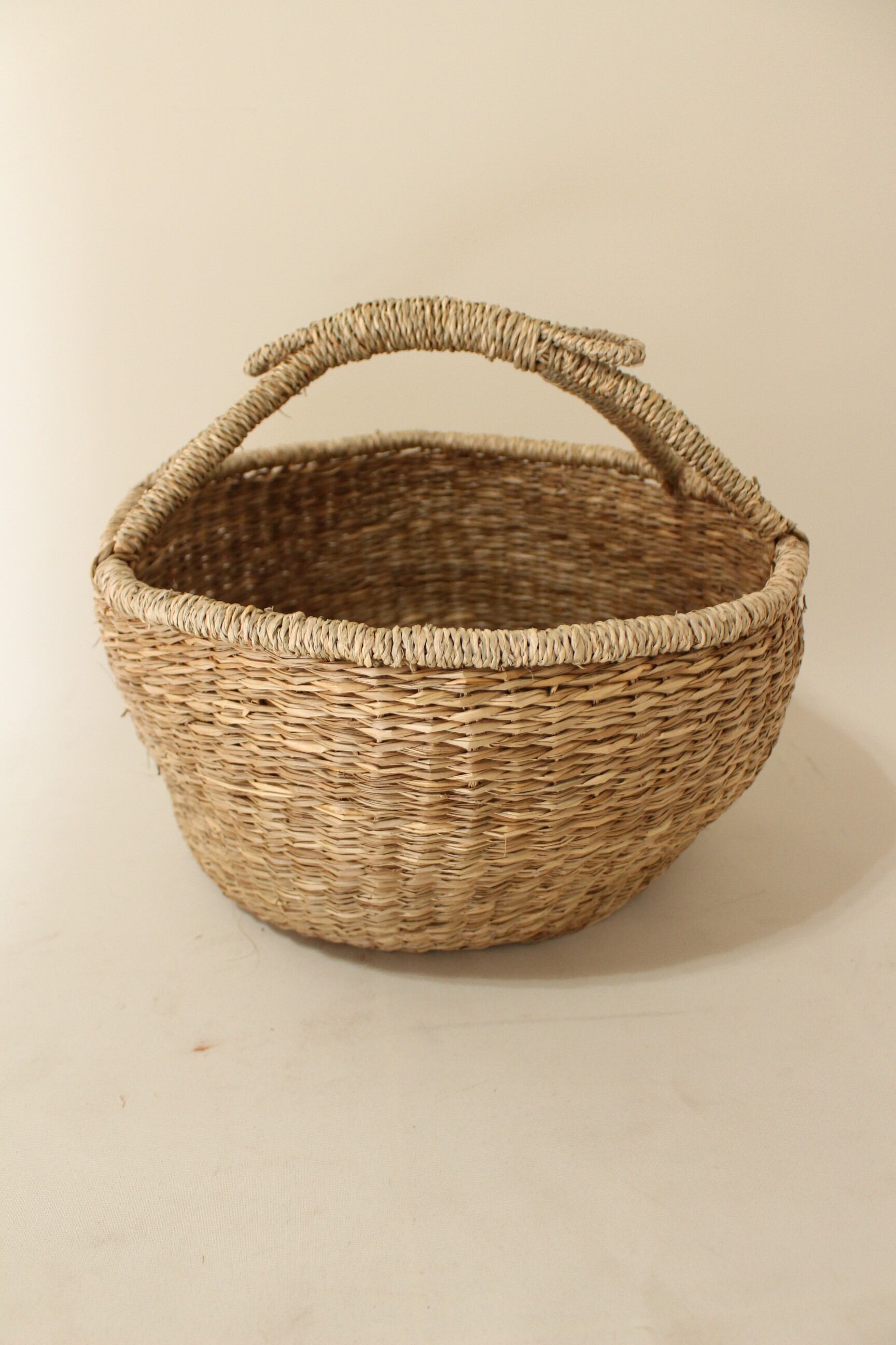 ナチュラルな風合いが魅力の大容量バスケットです。持ち手付きで使い勝手も抜群!