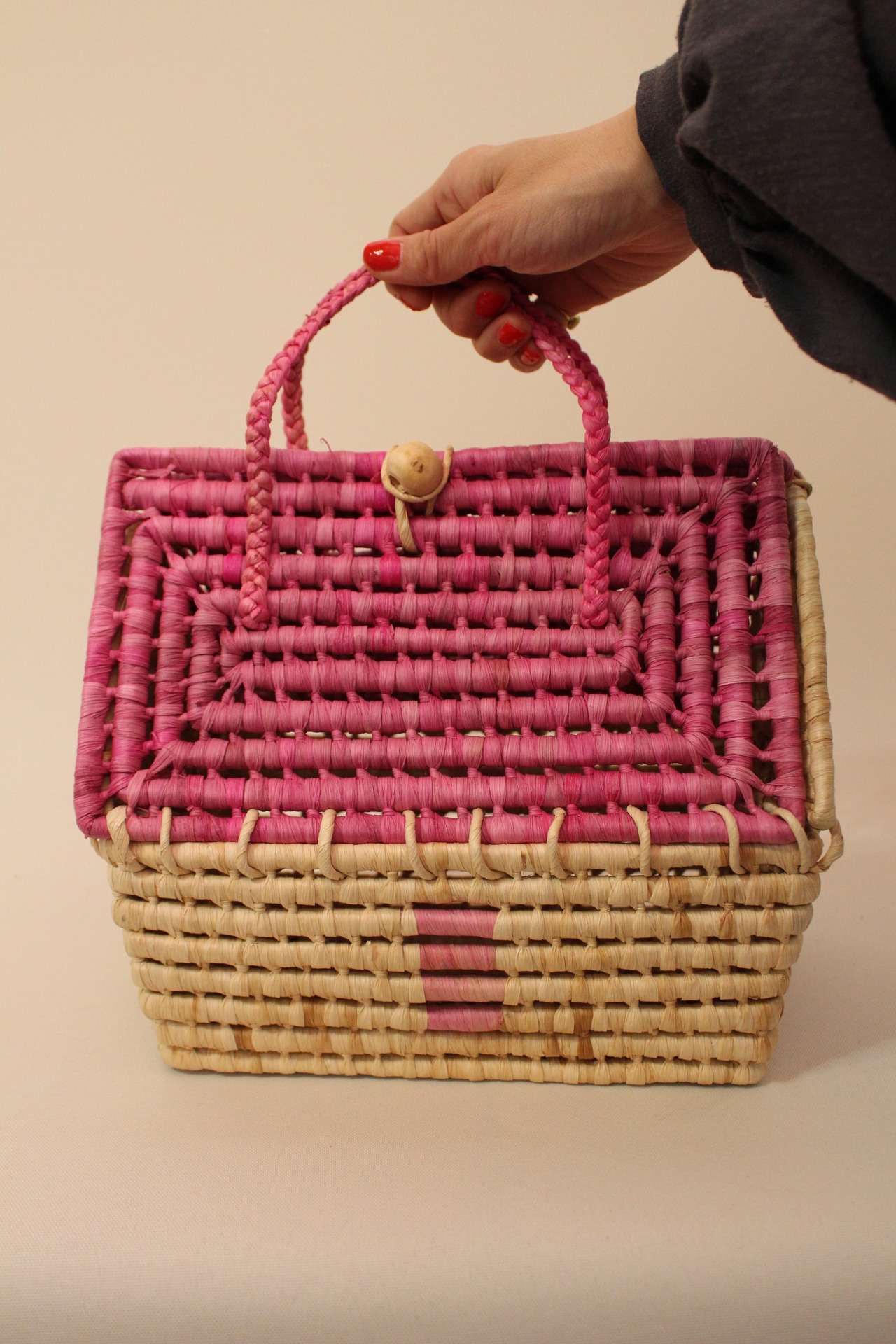持ち手は、少しだけ内側に入れてお届けします。どうかご了承ください。