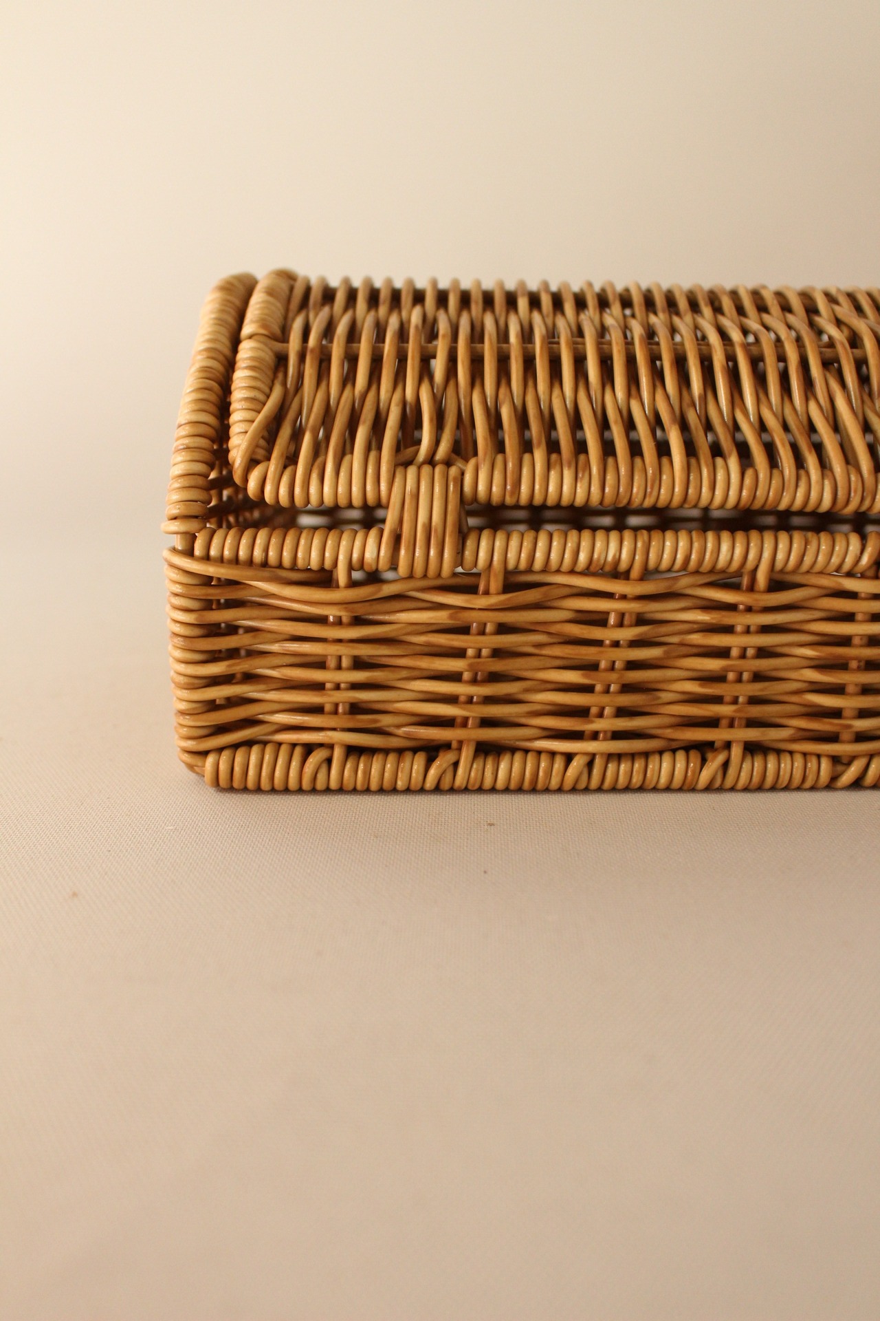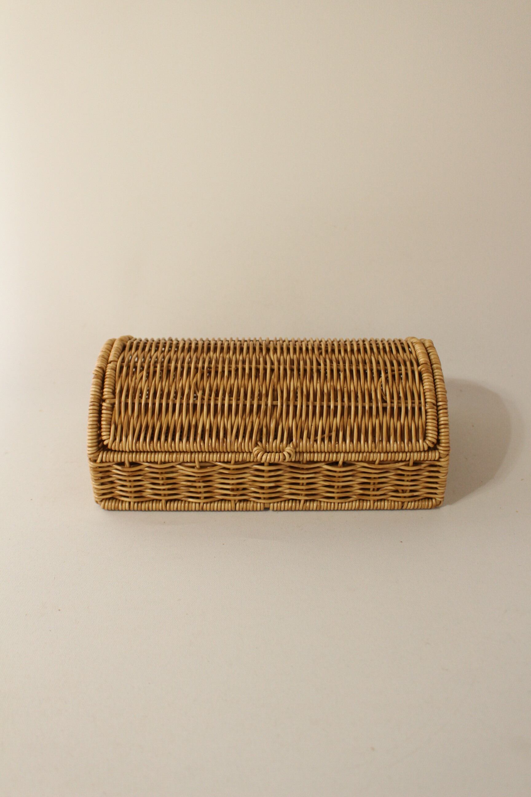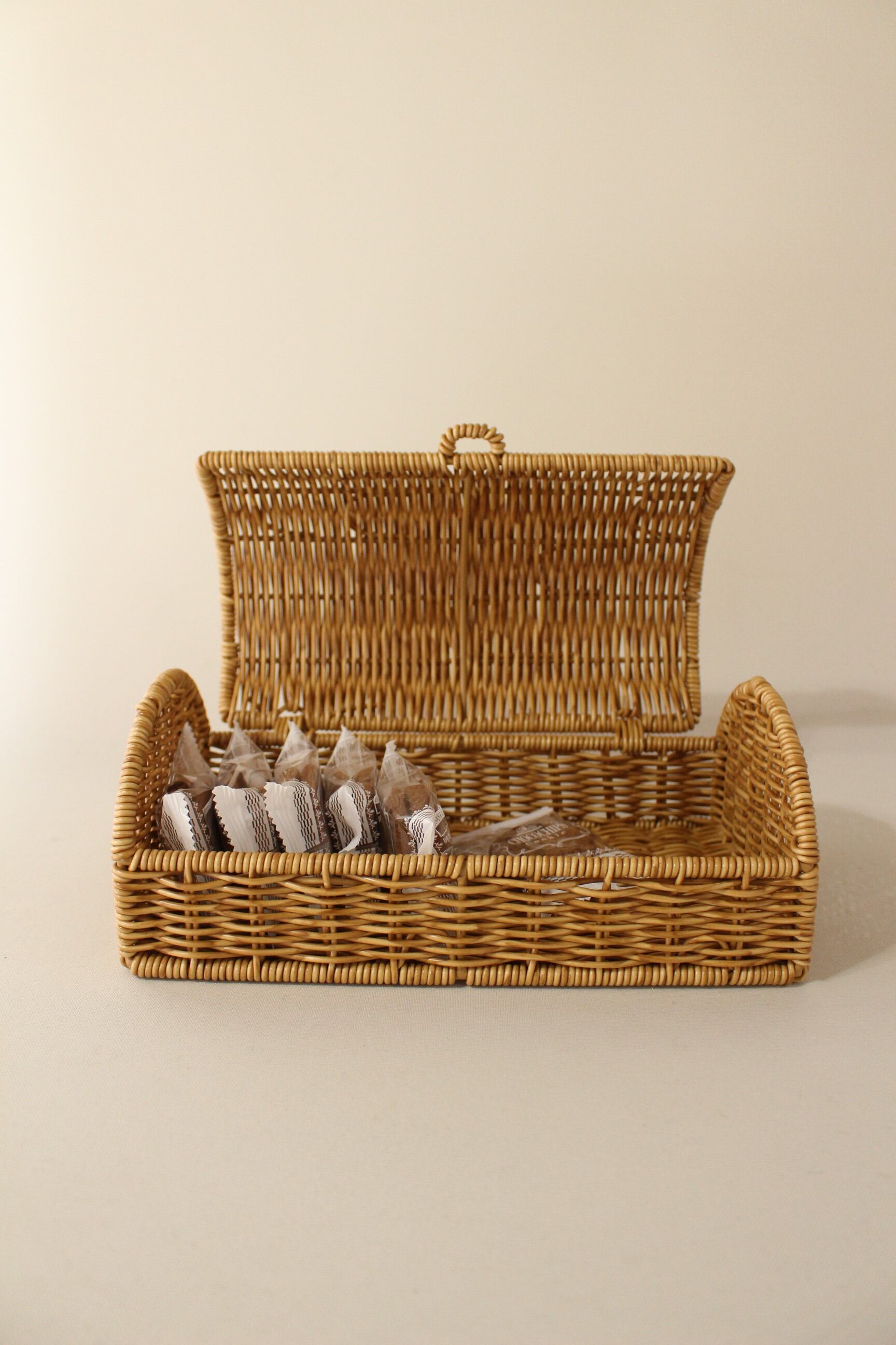 ふた付きで中身を隠せる、浅型ローバスケット。