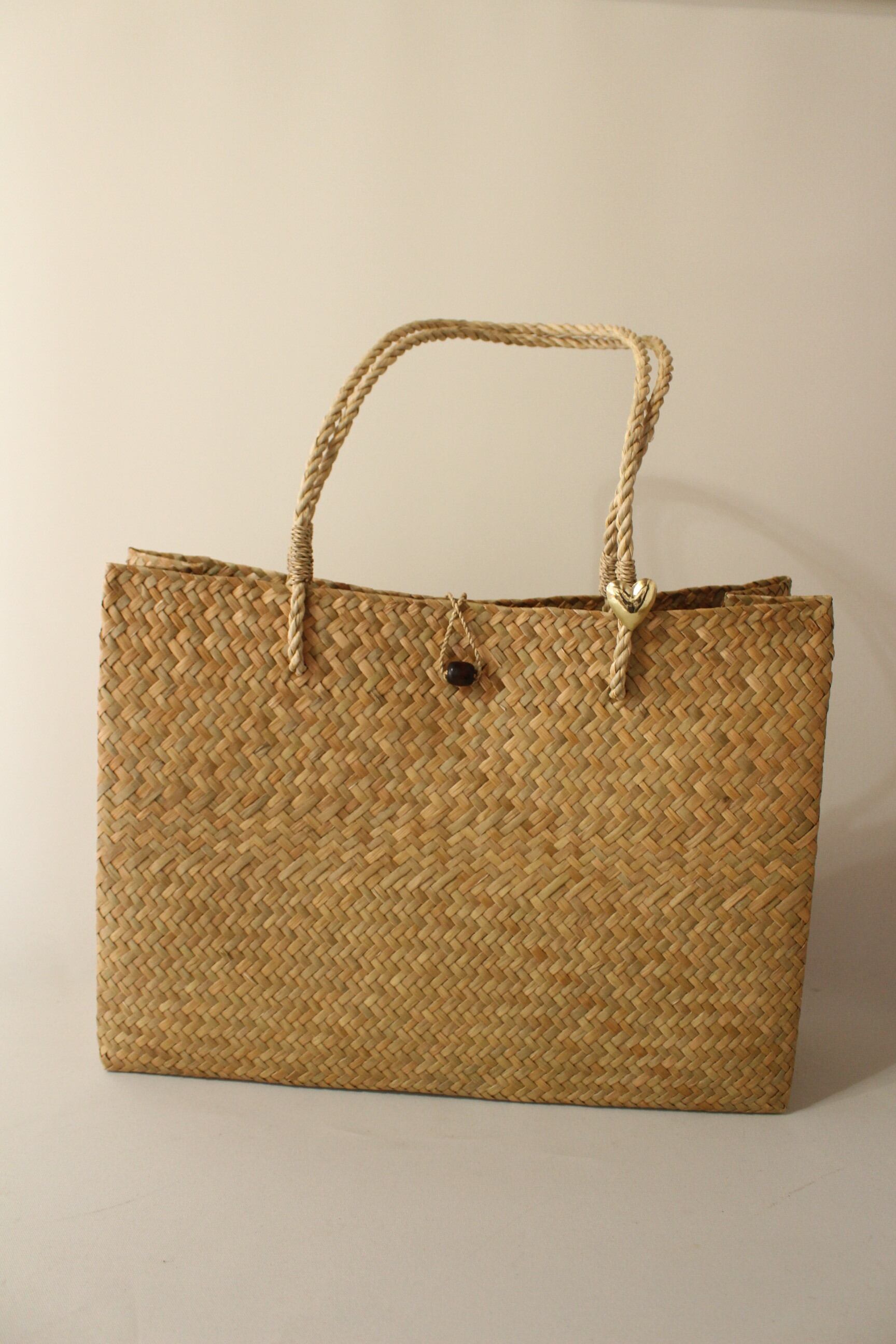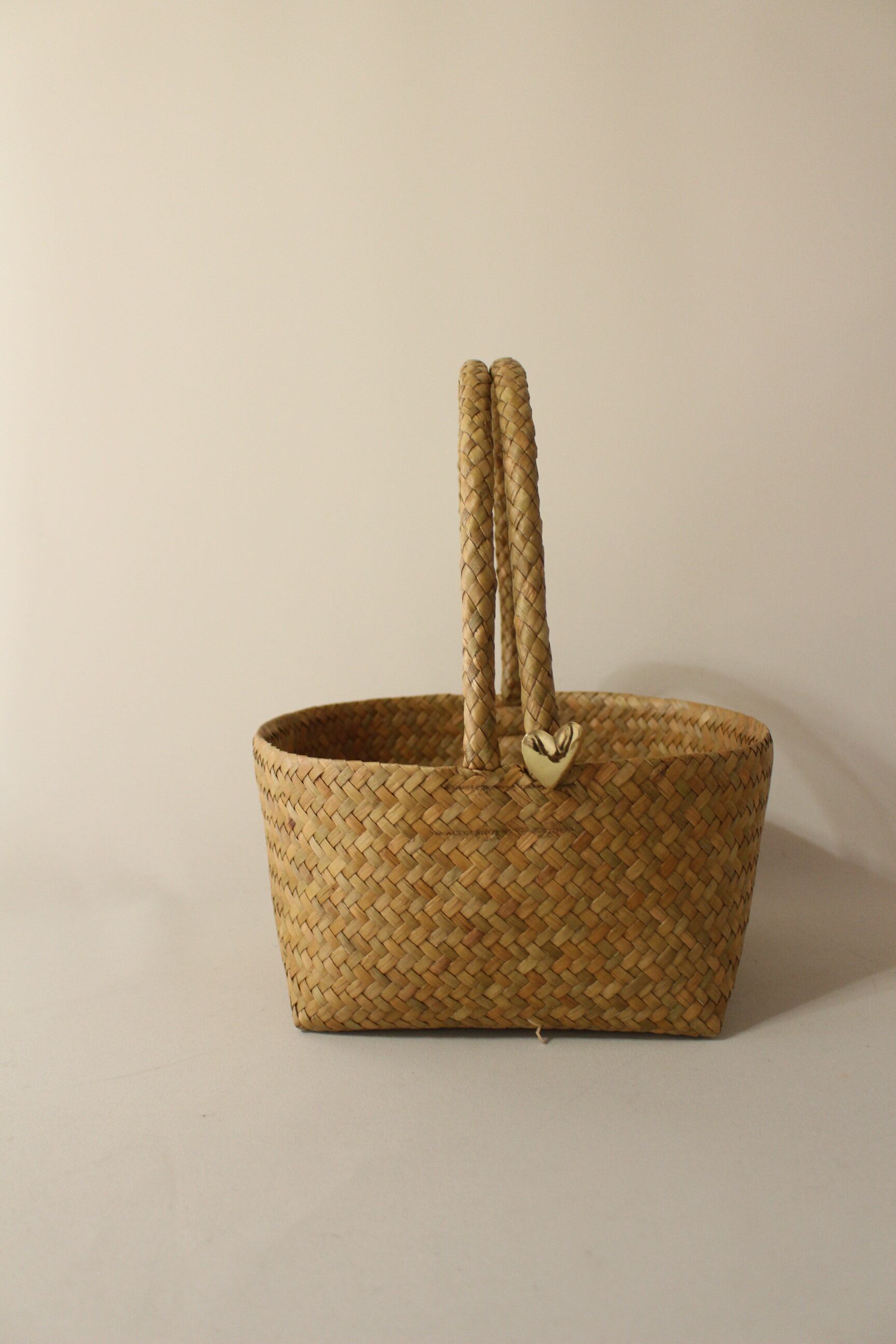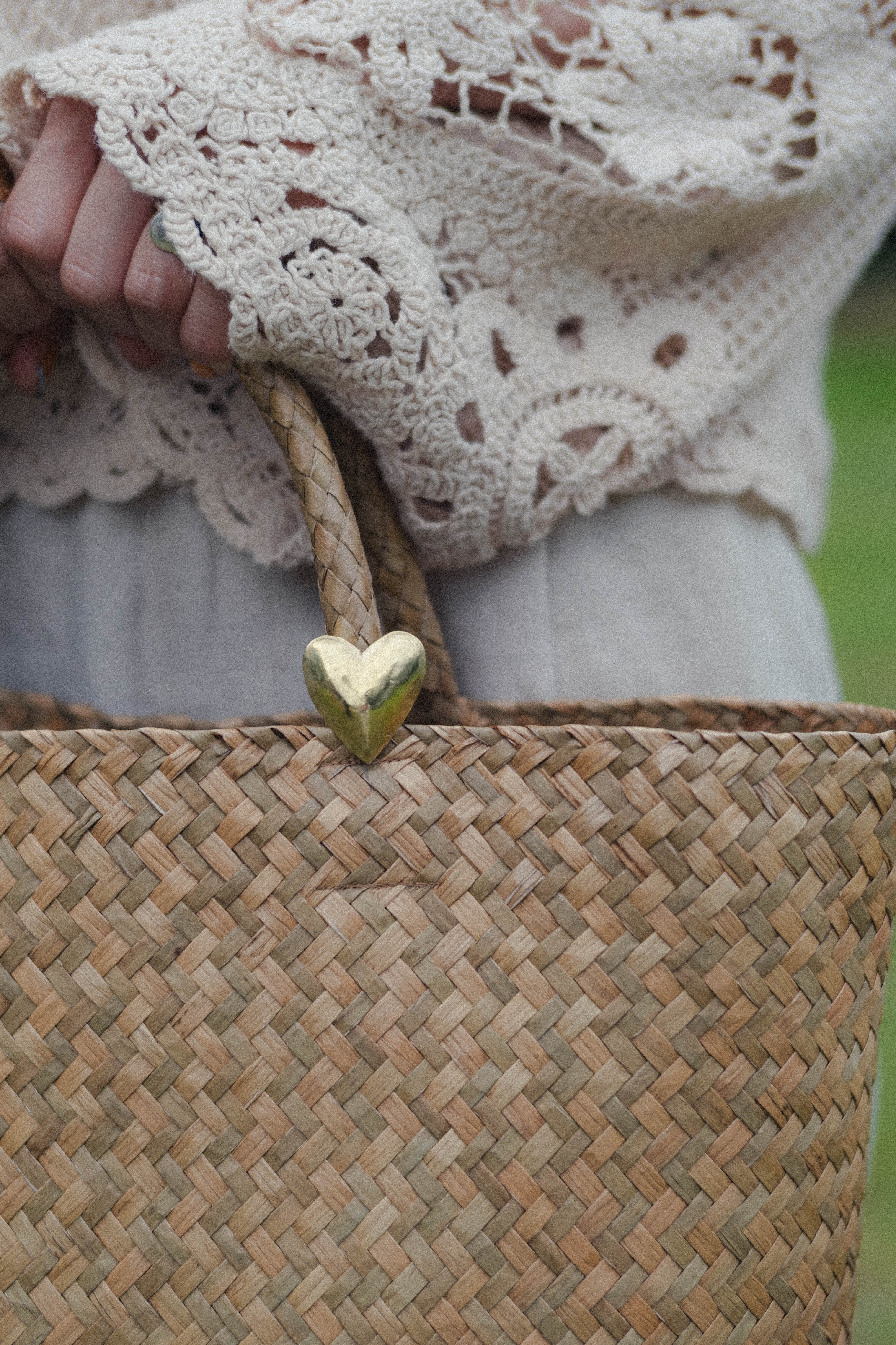 かごバッグの持ち手に、ちょこんと添える真鍮のハート。
