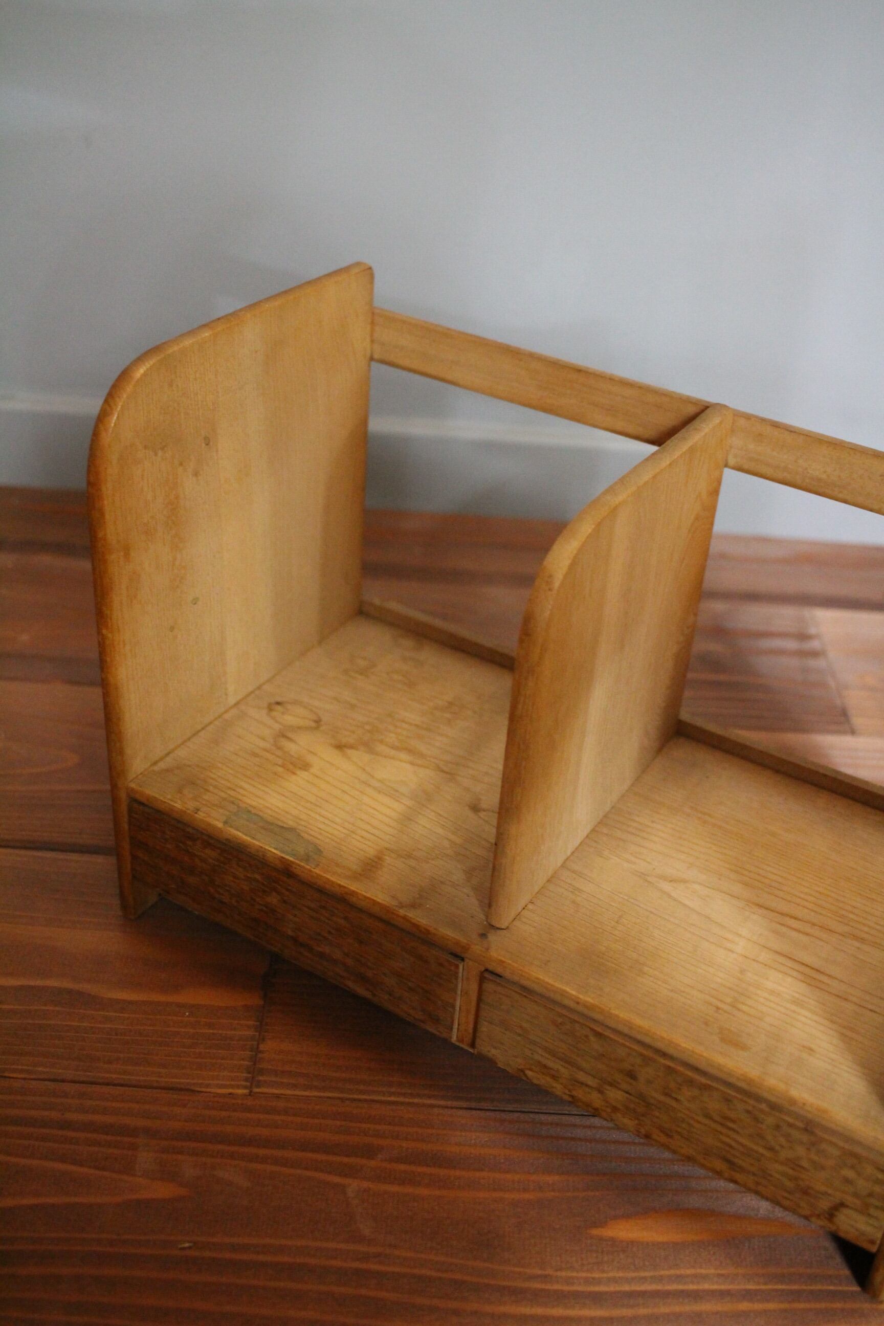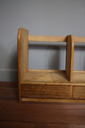 仕切り付きで本や雑誌を分けて収納でき、下段には小物整理に便利な引き出しが2つ付いています。