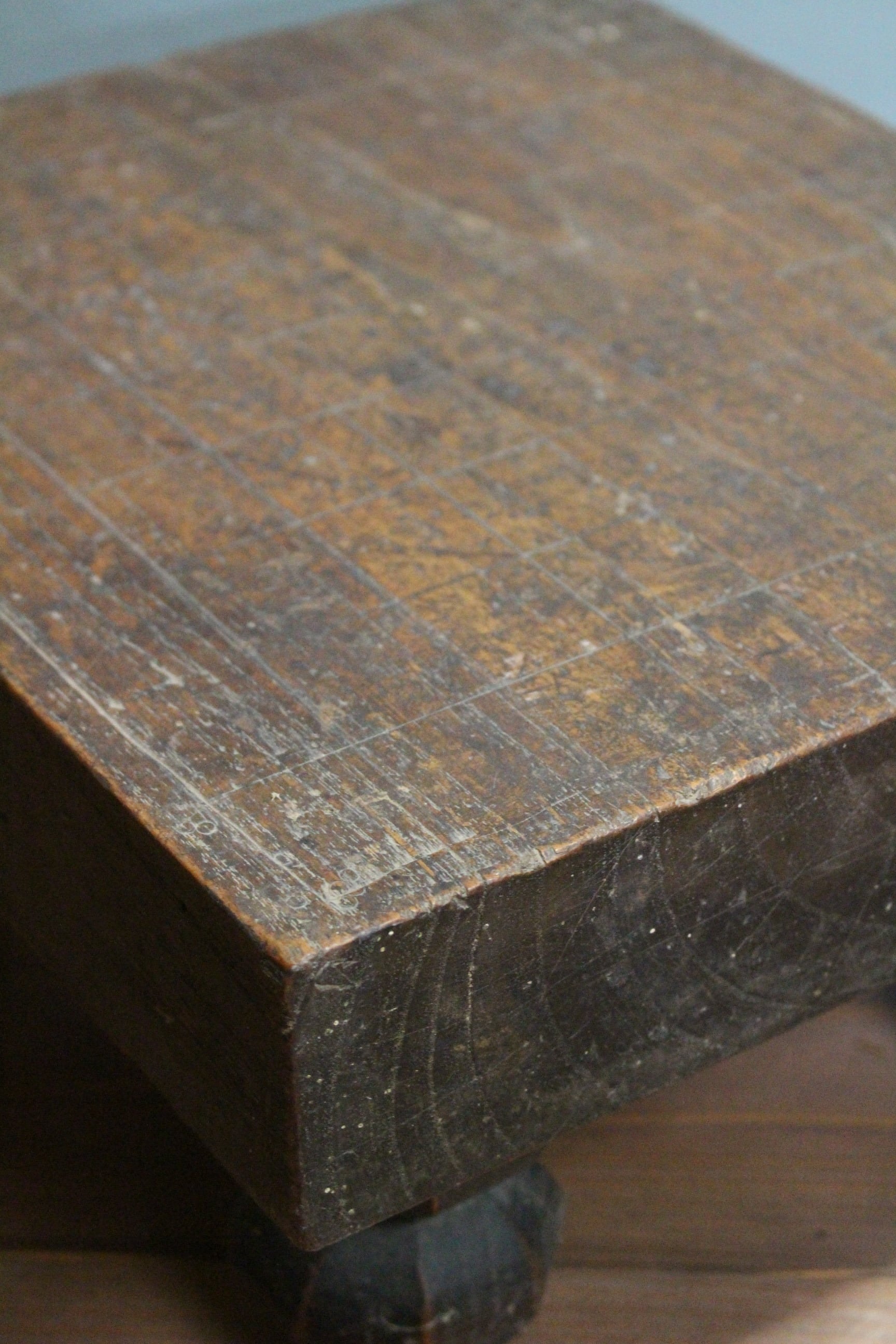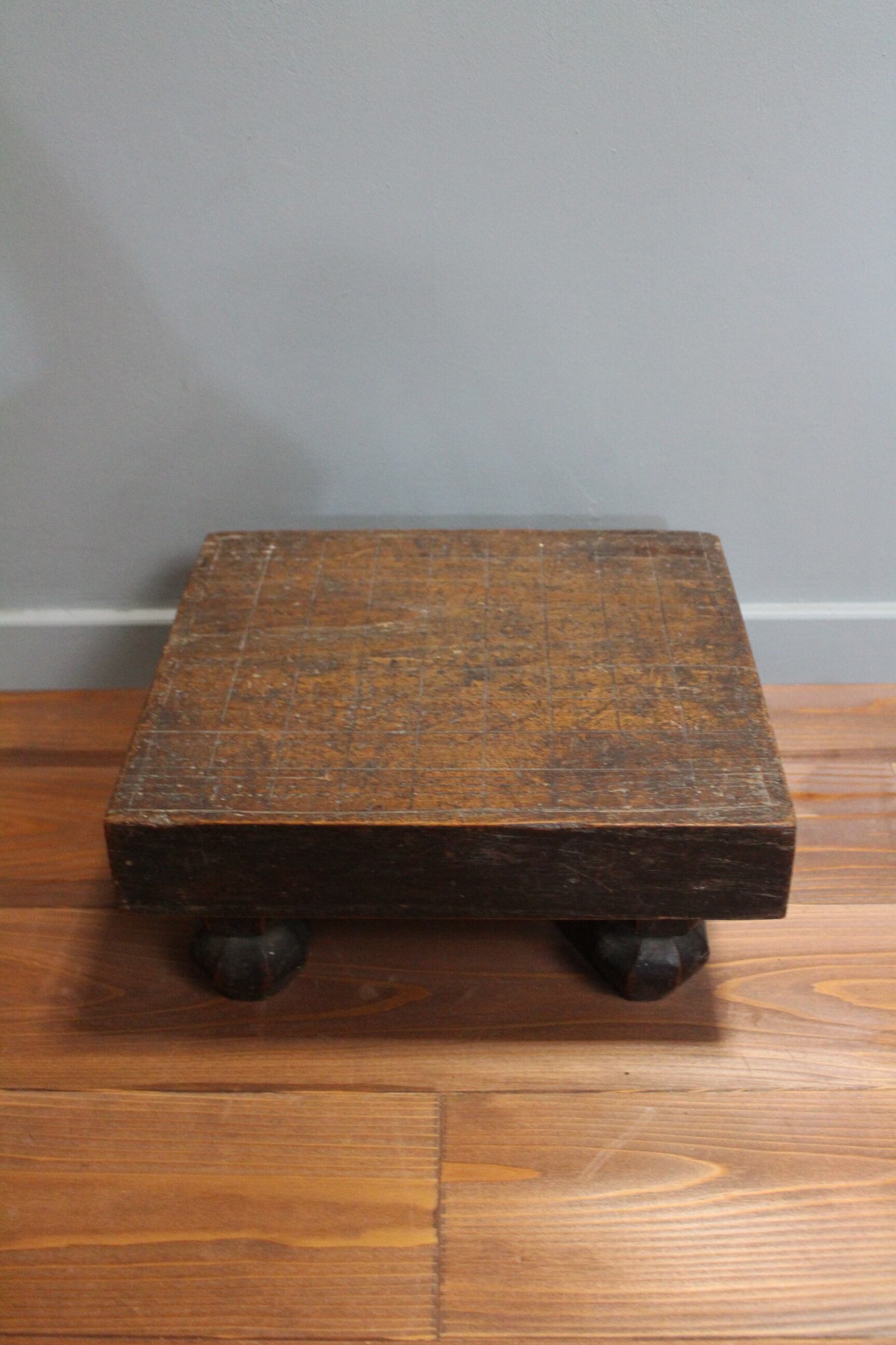 深みのある木の色味と、力強い脚のフォルムが印象的な古い将棋盤。