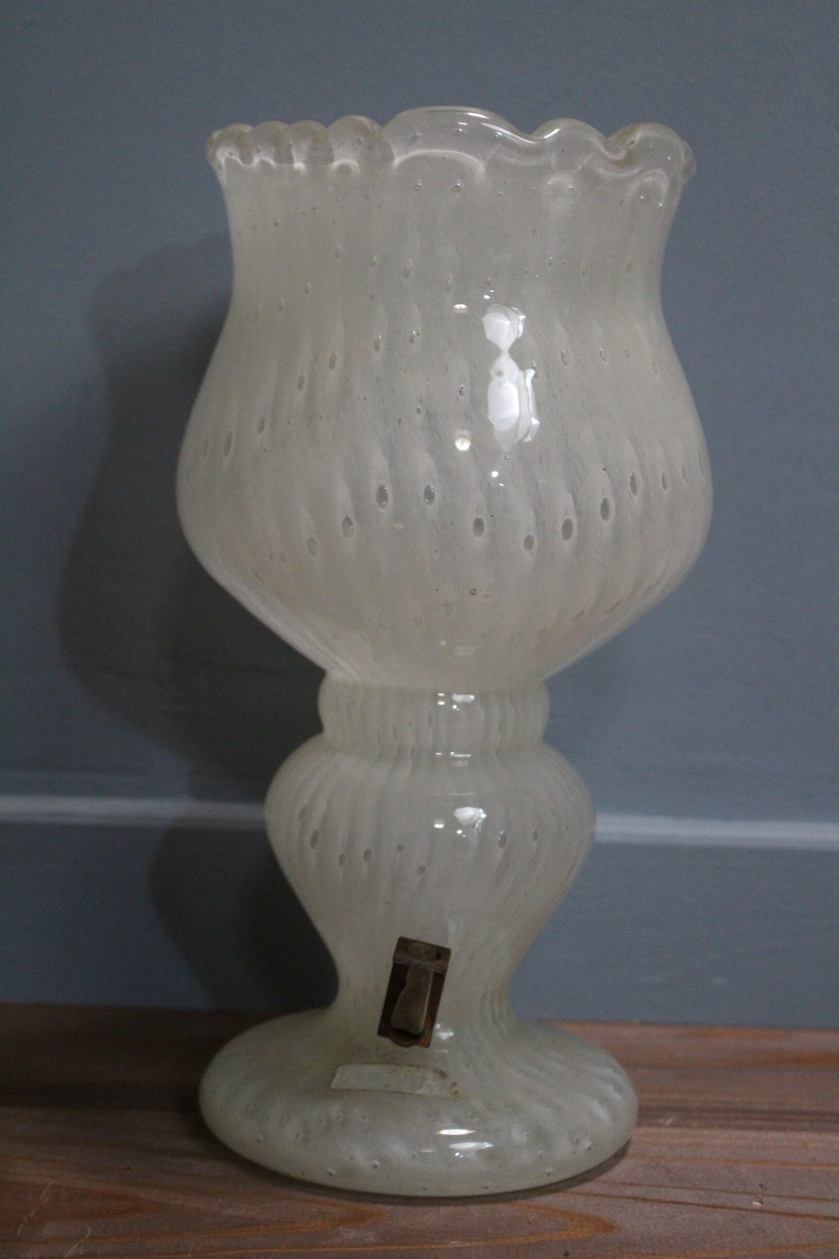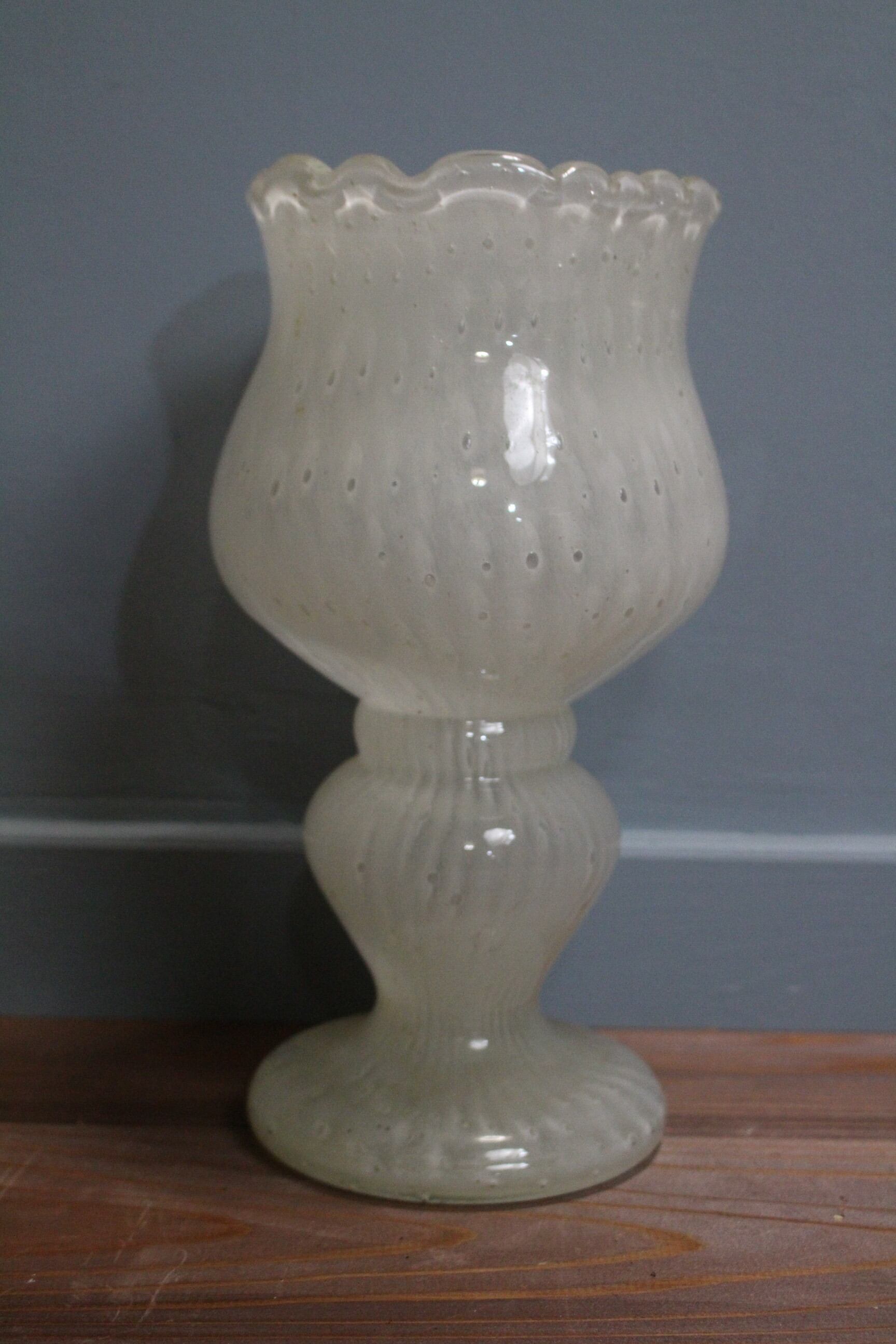 ミルク色のガラスが柔らかく光を反射する、古い花器。