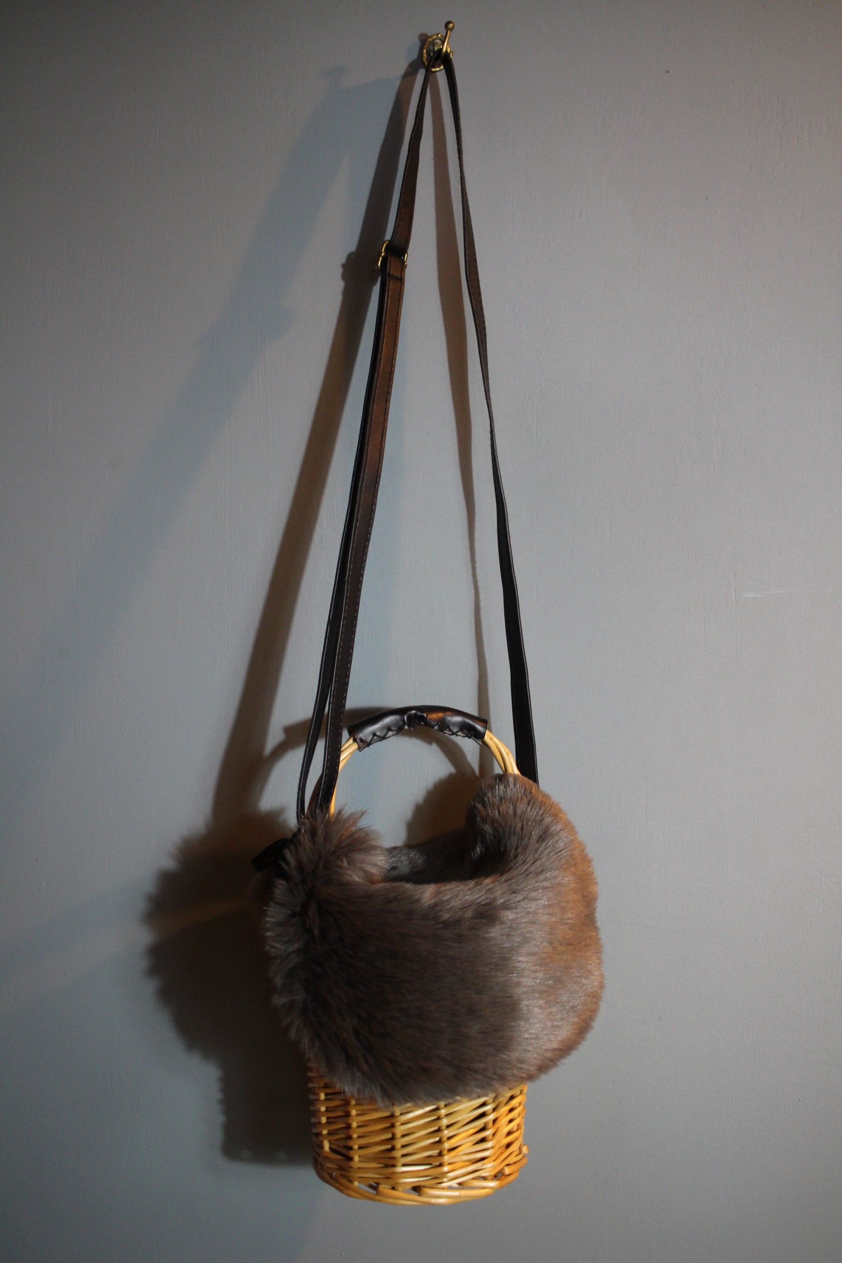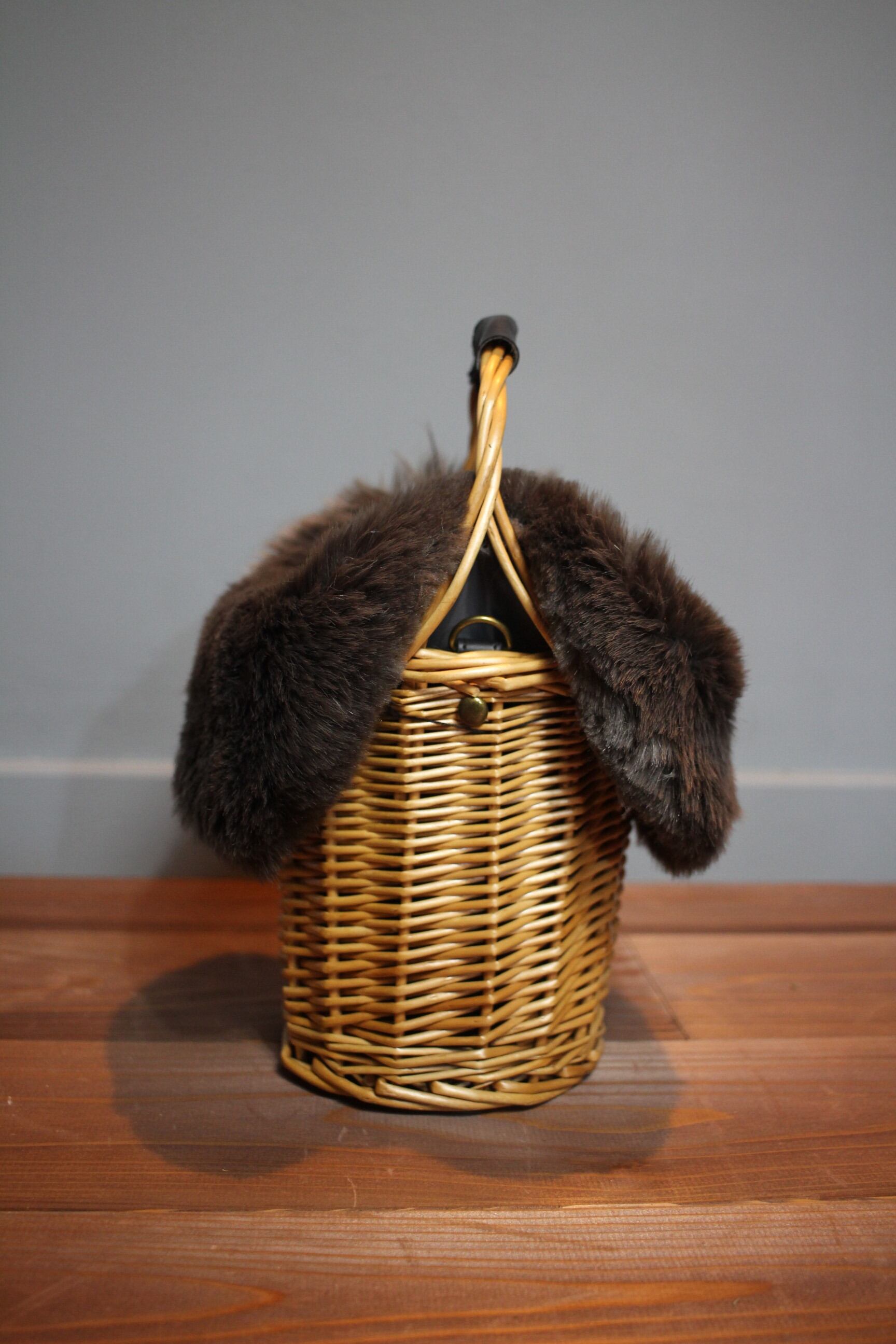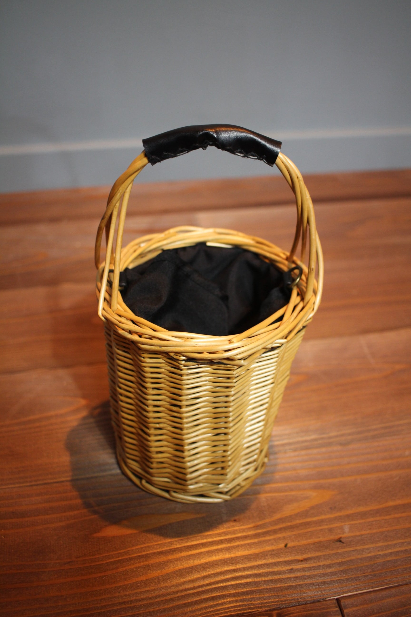 柳で編まれたショルダーバッグ。