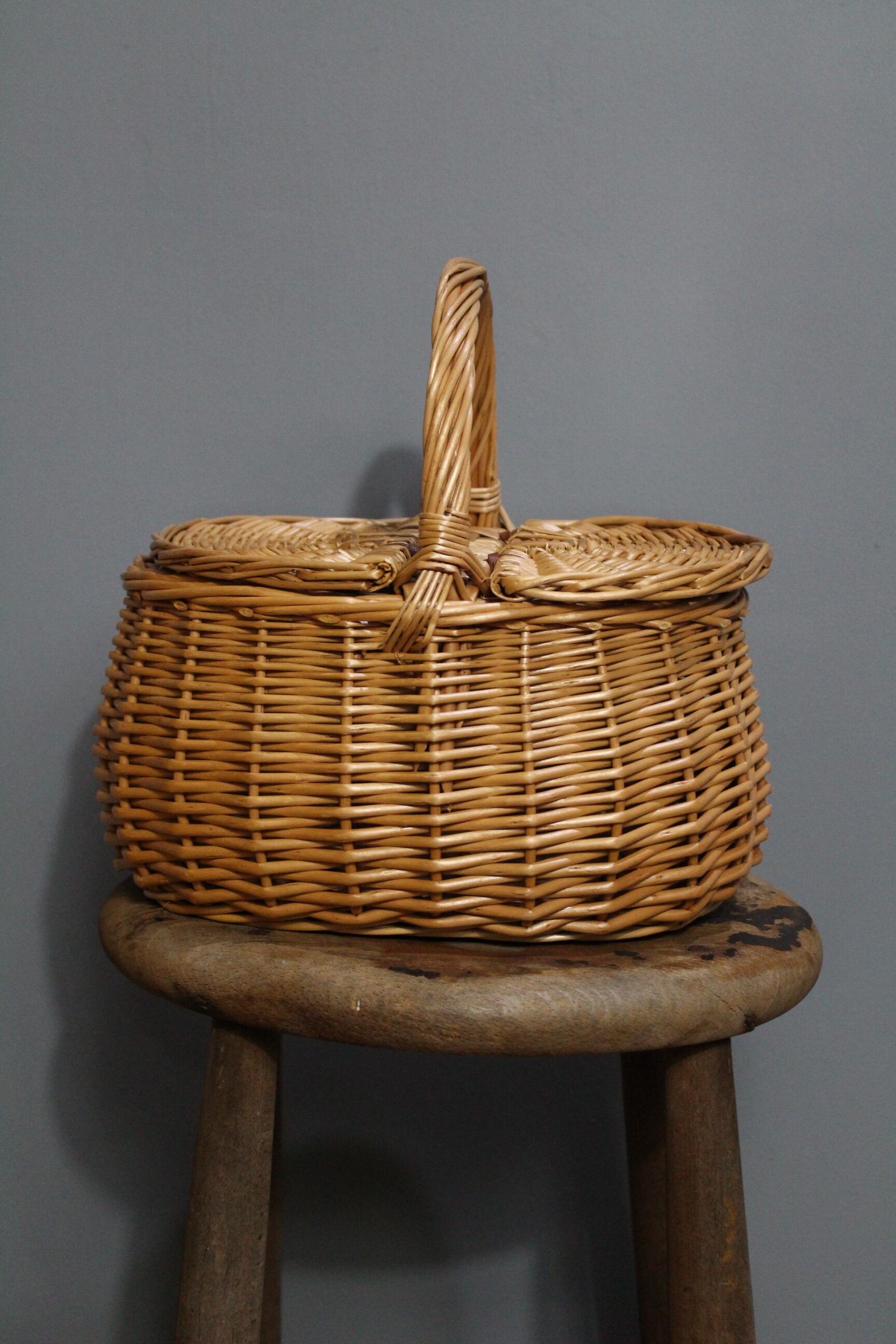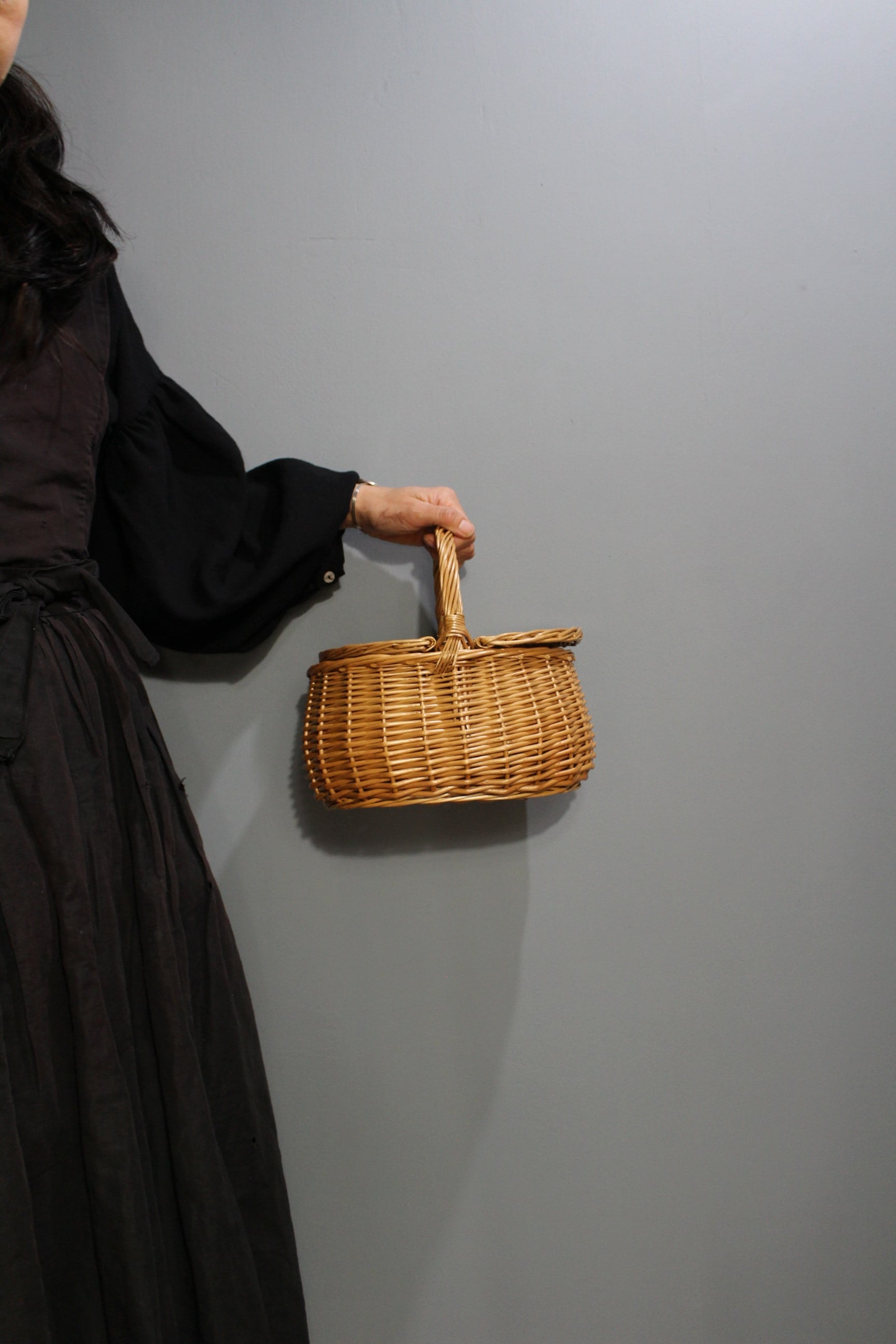 ころんと丸い形が可愛い、ふた付きの小さなかご。