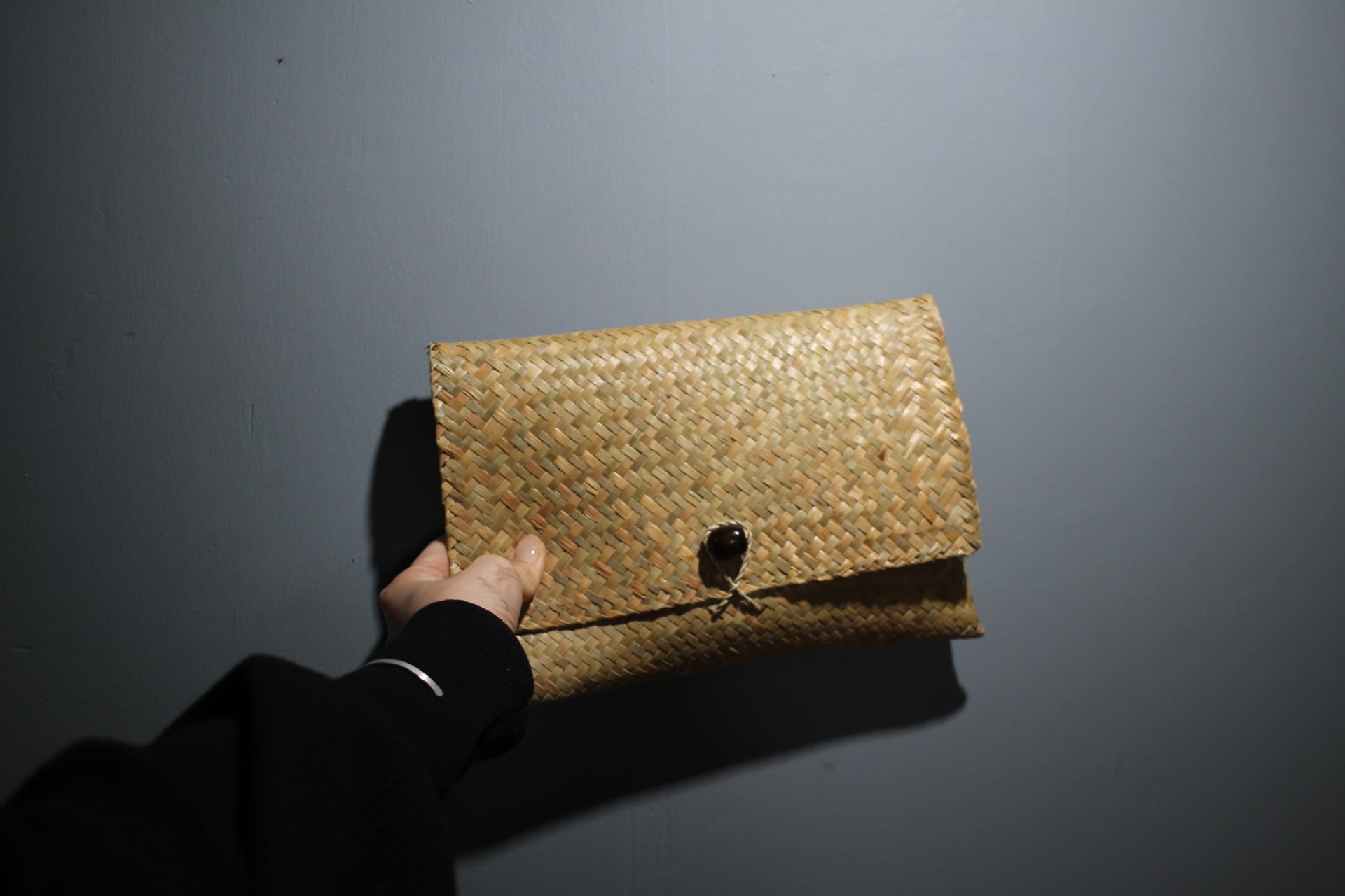 糊付けをしていない、カチューの薄型ポーチ。