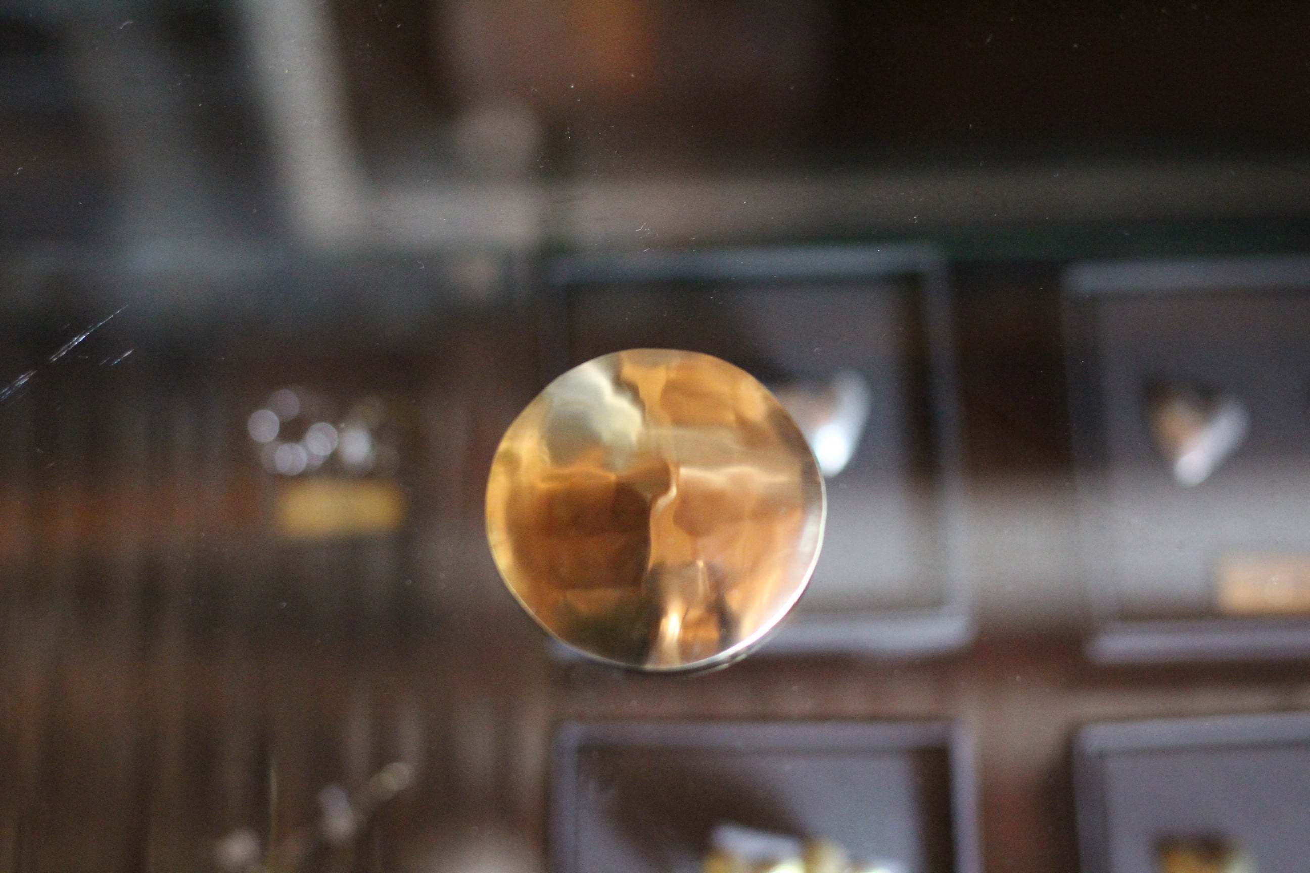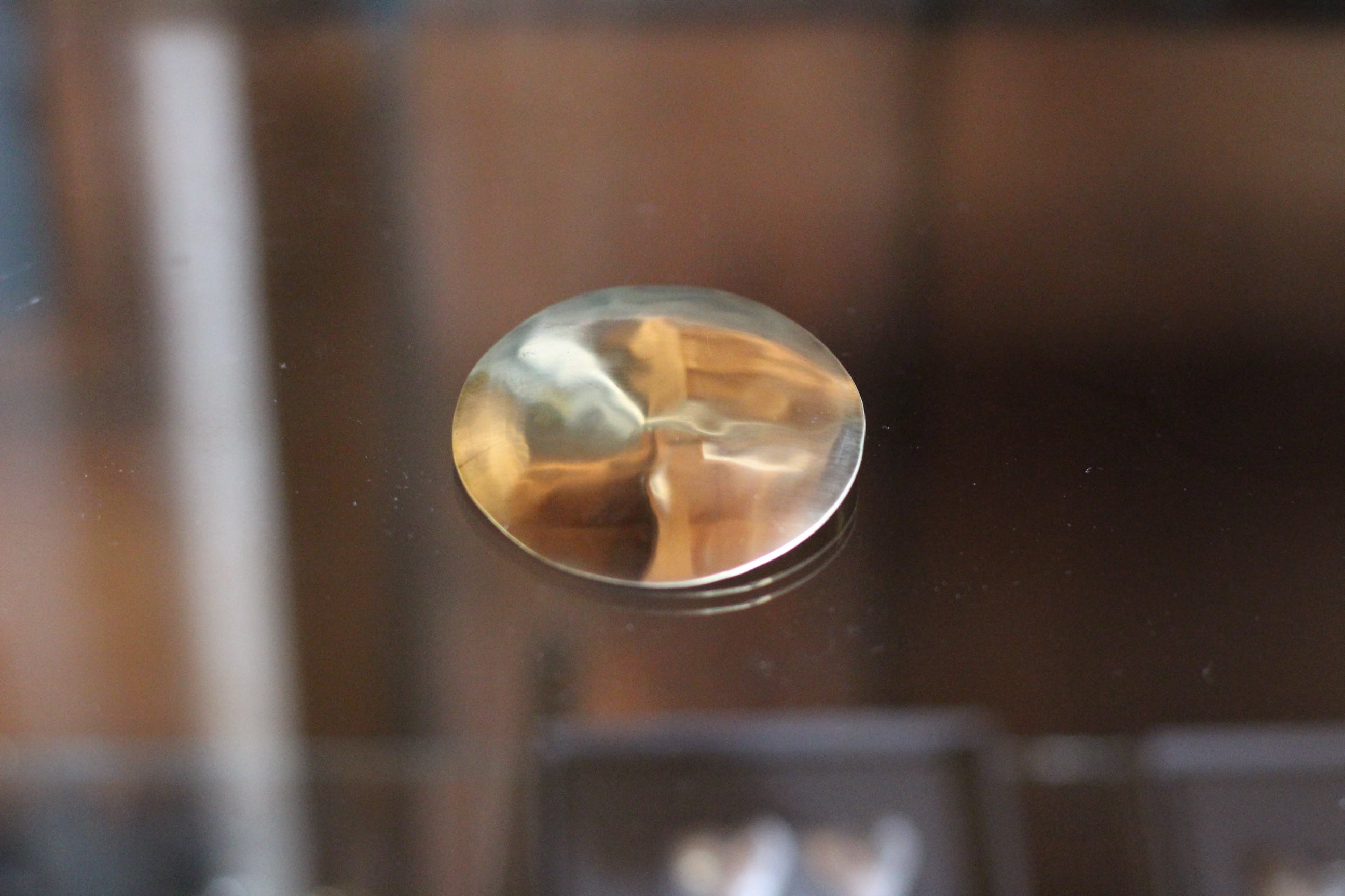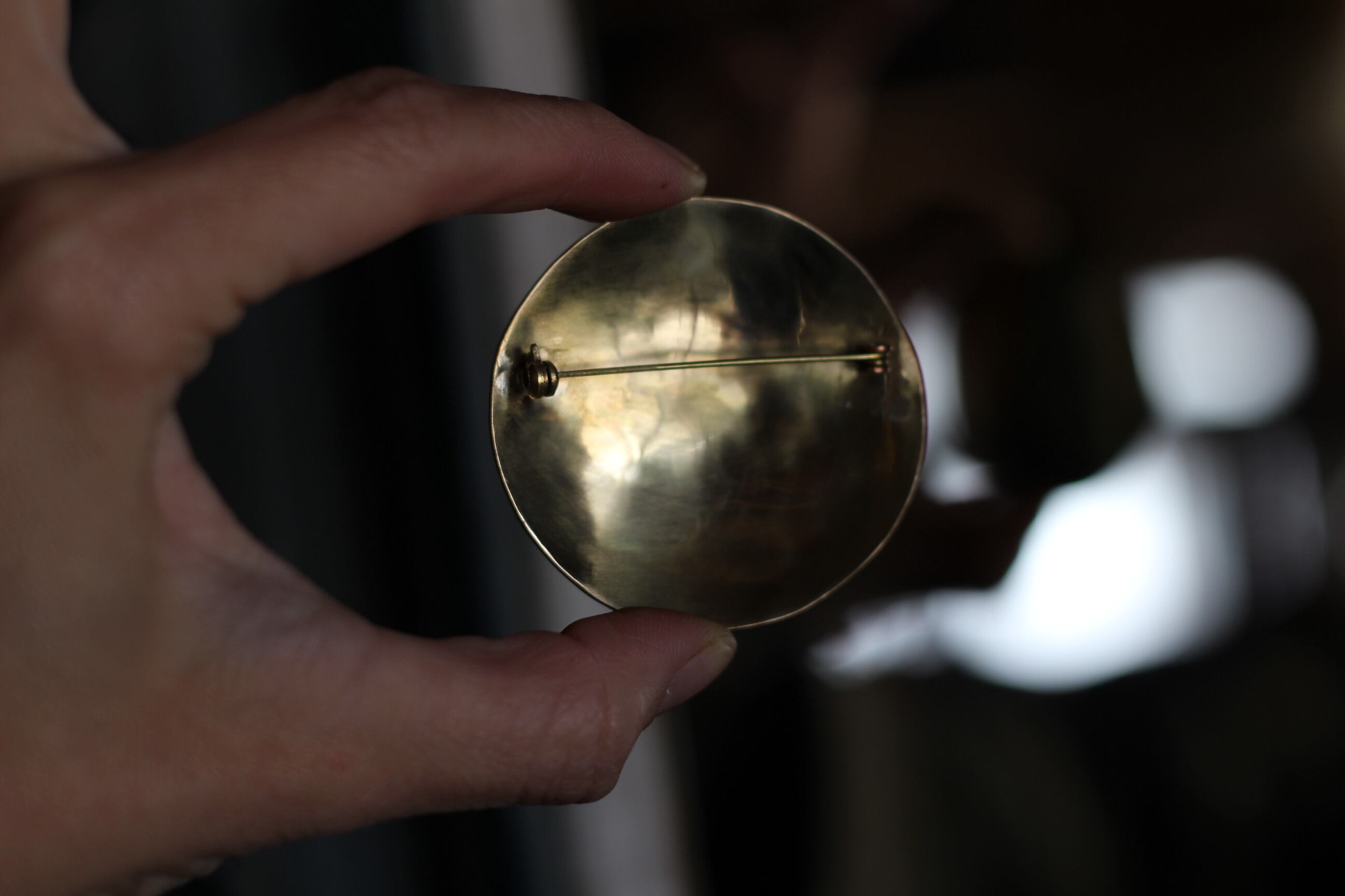 真鍮をまあるく成形したシンプルなブローチ。