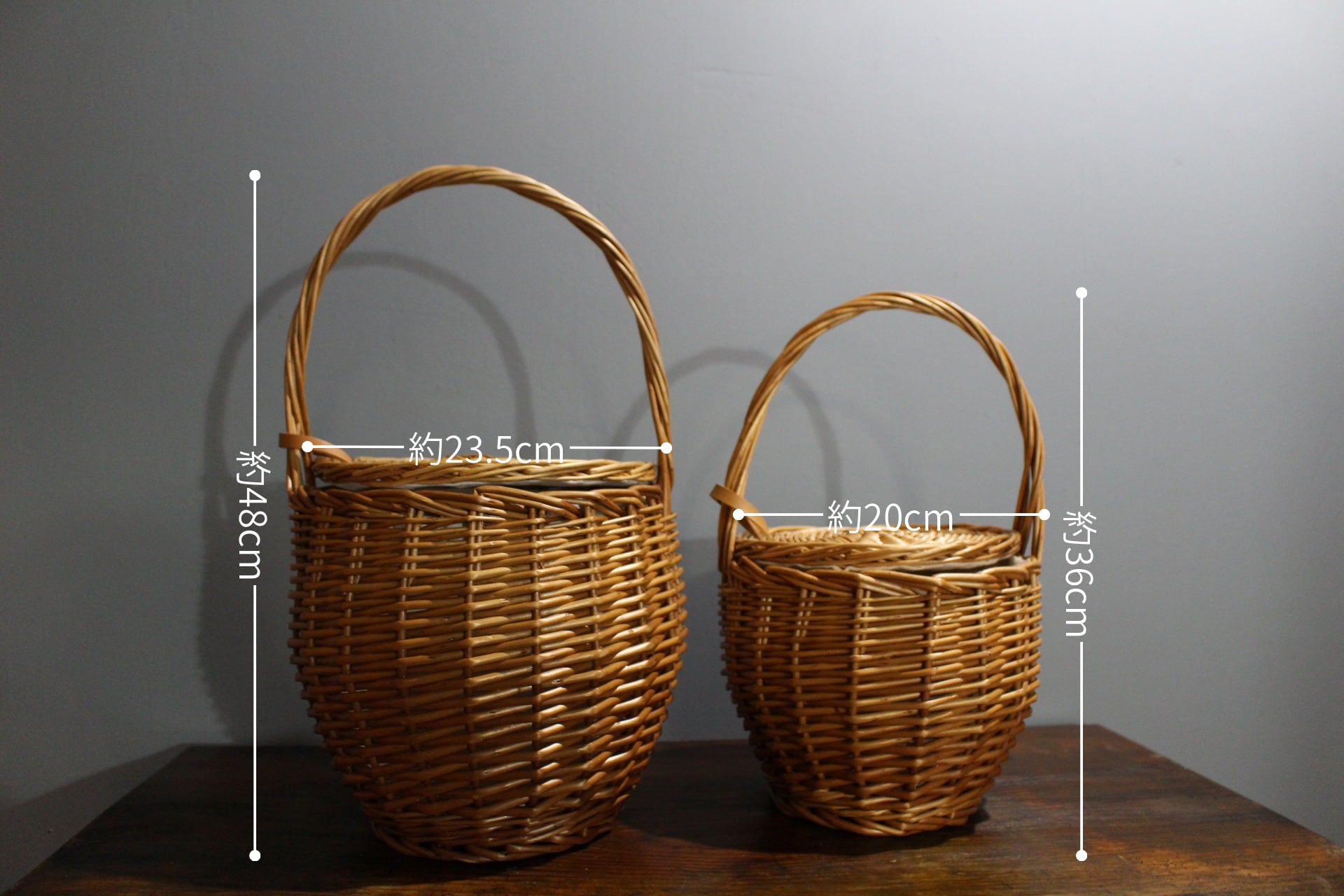いくつかまとめてご注文いただいた場合、 小さなバスケットを大きなバスケットの中に入れてお包みすることがあります。送料は大きいサイズに合わせた金額となります。