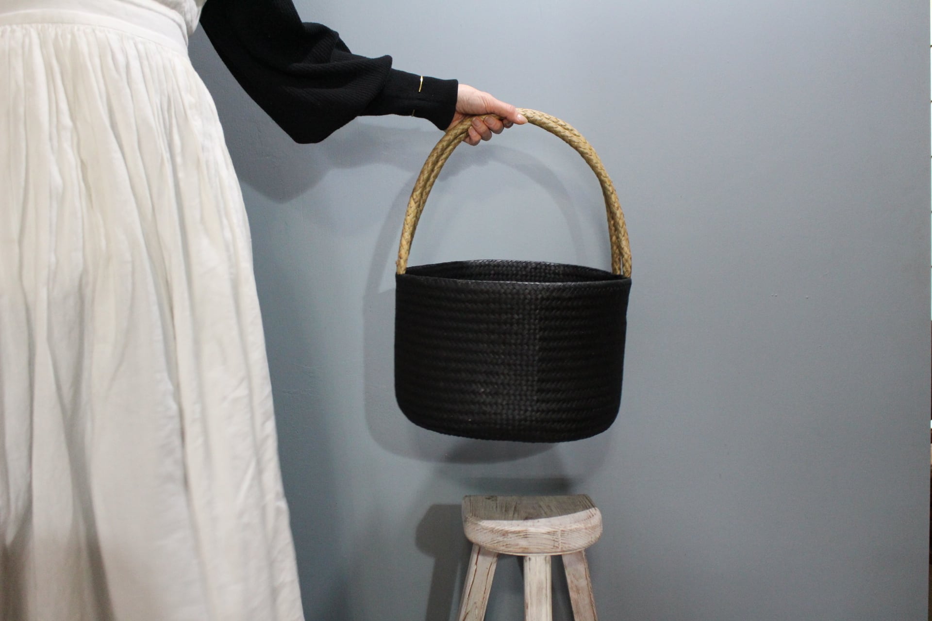 【カチュー】ラウンドバスケット / ブラック