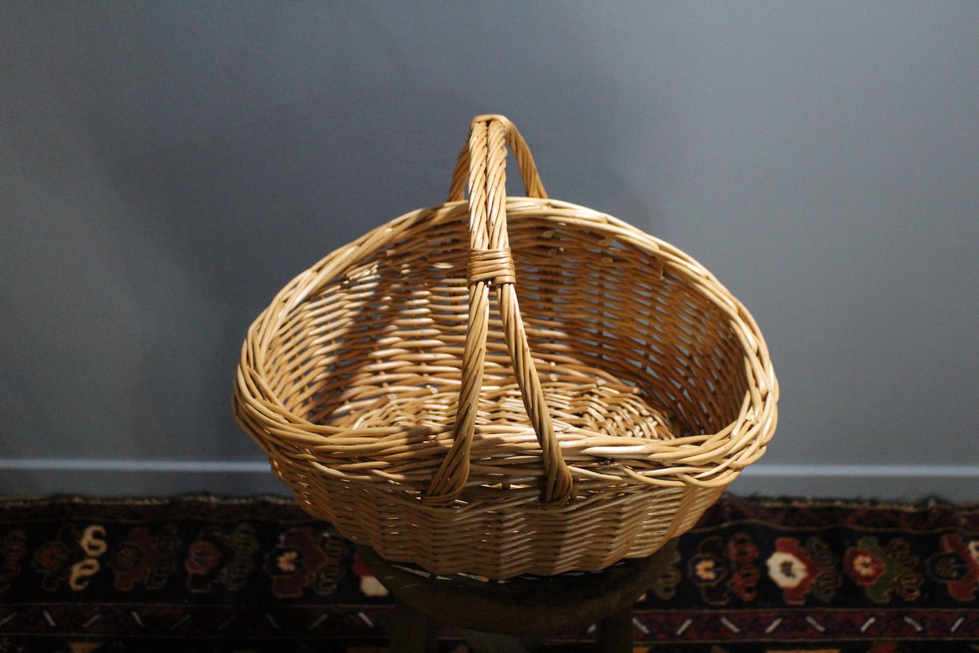 しっかりと編み込まれた、存在感のあるラタンのかご。
